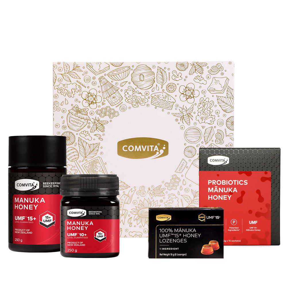 Comvita® UMF™ 15+ Manuka Honey contains pure New Zealand Manuka Honey. Manuka Honey is gaining worldwide recognition for its unique properties. UMF stands for Unique Manuka Factor™, a measure of the unique properties found in honey made form the nectar of the Manuka bush (Leptospermum scoparium), native to New Zealand.