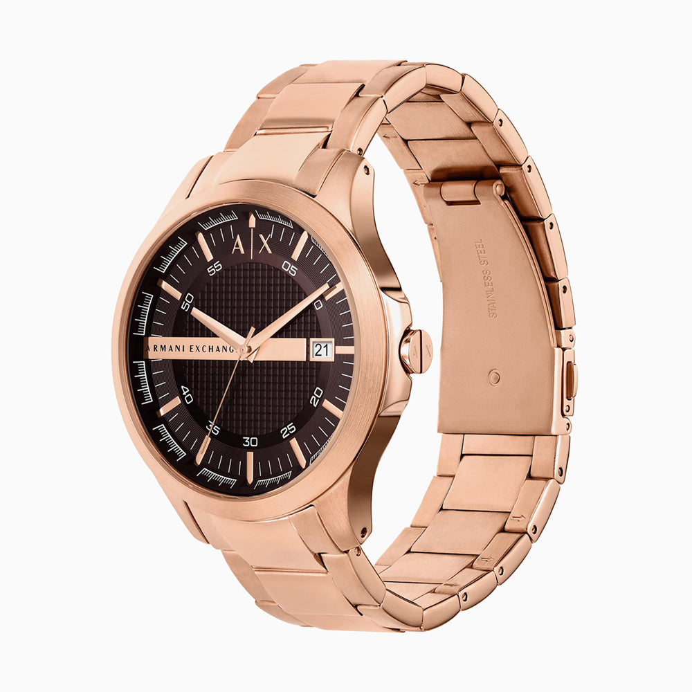 This 46mm watch by Armani Exchange is designed to impress with its sleek and stylish design. Featuring a brushed, cd finish and a sunray textured dial, this watch is perfect to make a statement. Its three-hand date movement and stylish stainless-steel bracelet add to its utility and versatility.
