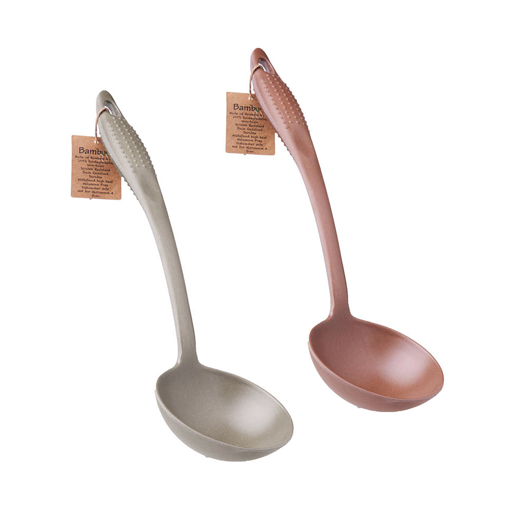 BambUSA range of eco-friendly, biodegradable kitchenware is made from bamboo and corn starch. It is 100 percent natural and renewable. Bamboo is also a natural anti-bacterial. BambUSA ladle is solid, durable, easy to clean and stain resistant. It is also able to withstand high heat. FDA and LFGB food safe. Dishwasher safe