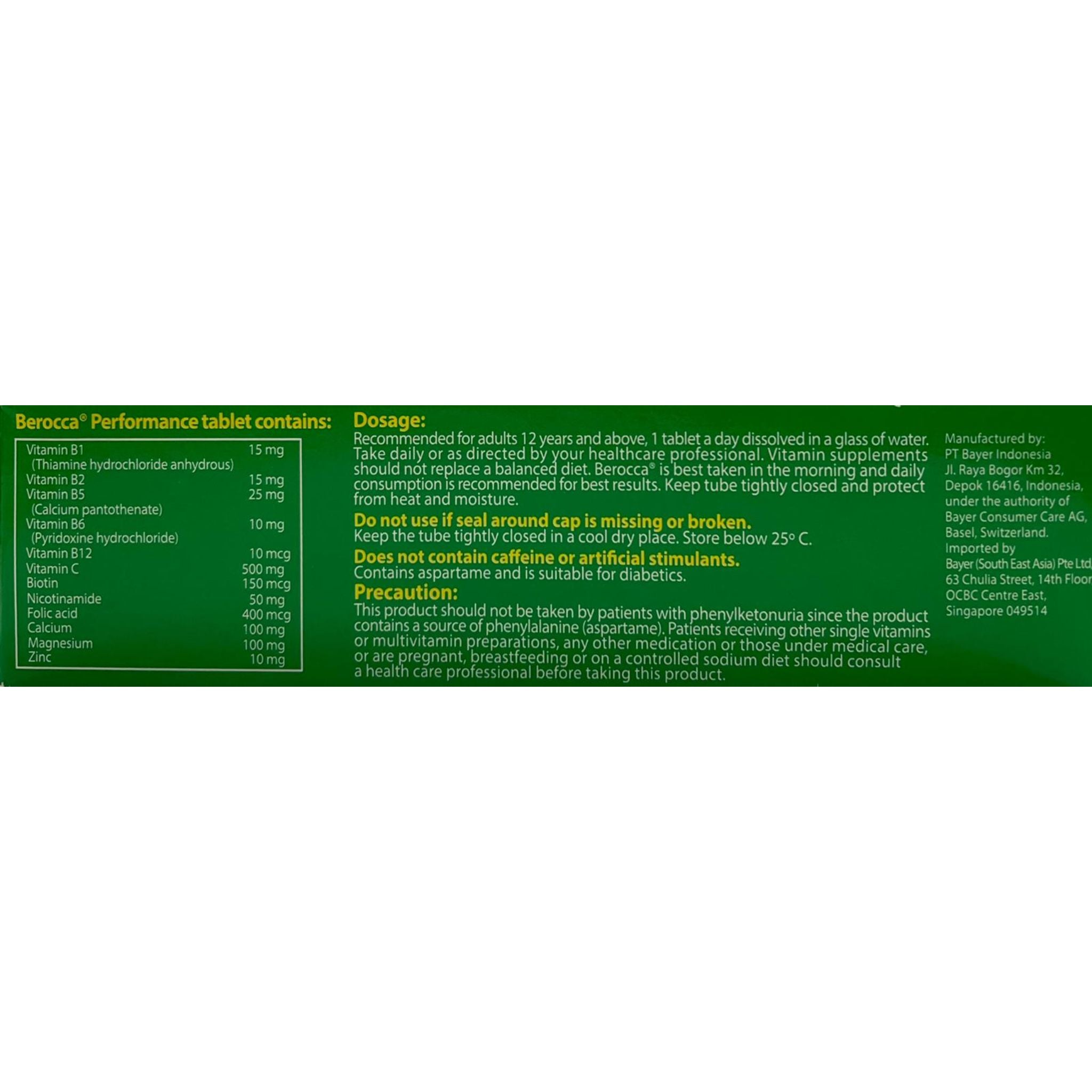 Berocca Performance is a unique combination of B vitamins, vitamin C and Essential minerals, like calcium, magnesium and zinc, which works in synergy to improve your mental alertness and physical energy throughout the day. Take 1 tablet per day dissolved in a glass or a 250ml bottle of water.