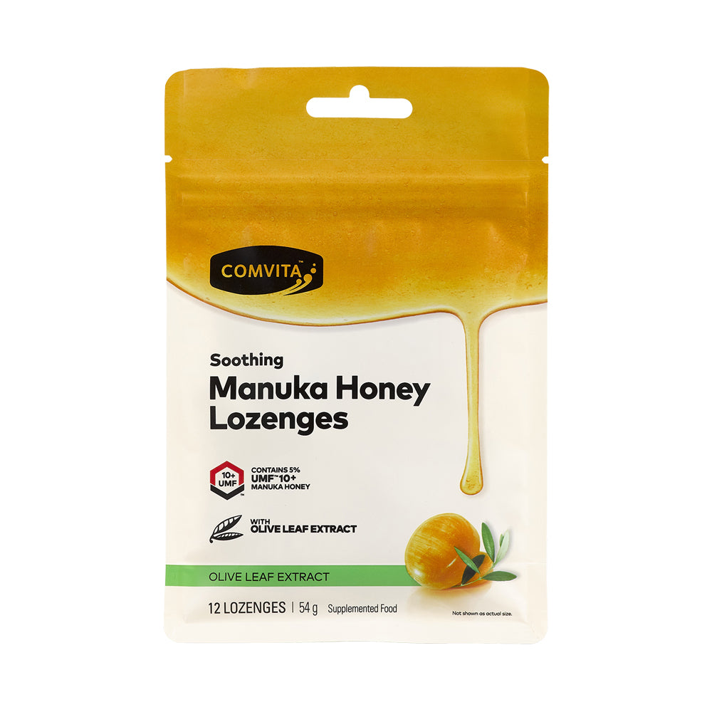 Experience natural, soothing relief with Comvita Olive Leaf Extract Manuka Honey Lozenges – your go-to for throat relief.