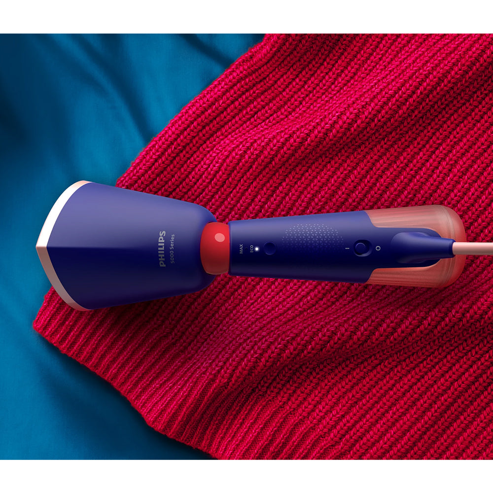 You’ve chosen your outfit, but have no time to iron. Don’t worry, we've got you! Forget clunky irons and embrace the Philips handheld steamer 5000.It’s ready to go in 35 seconds and a joy to use. No-burn guarantee with ultimate fashion flair!