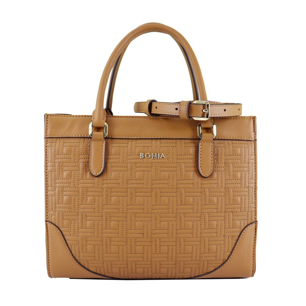 BONIA Embossed Calf Leather Satchel - Choccy