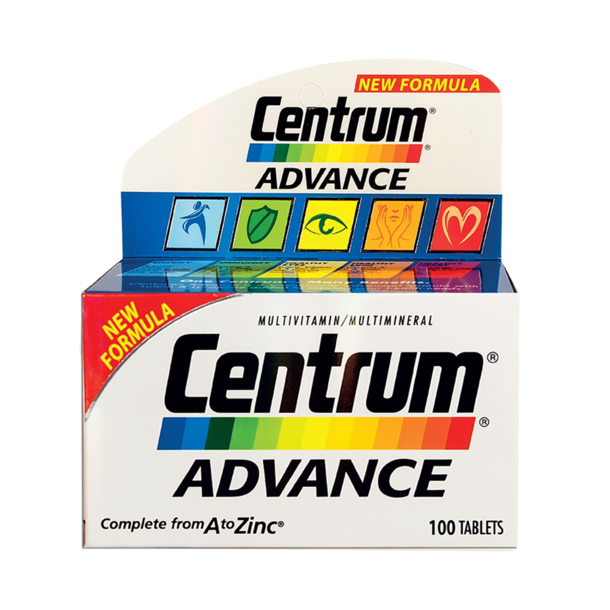Centrum Advance provides key antioxidants such as Vitamins A, C & E, Zinc and Selenium to support immune system, Vitamins B1, B2, B12, Niacin, Biotin and Folic Acid to help release energy from food. Lutein, Vitamin A & Zinc to help support good eye health. Lycopene, Vitamin B6 and Folic Acid to help maintain a healthy heart.