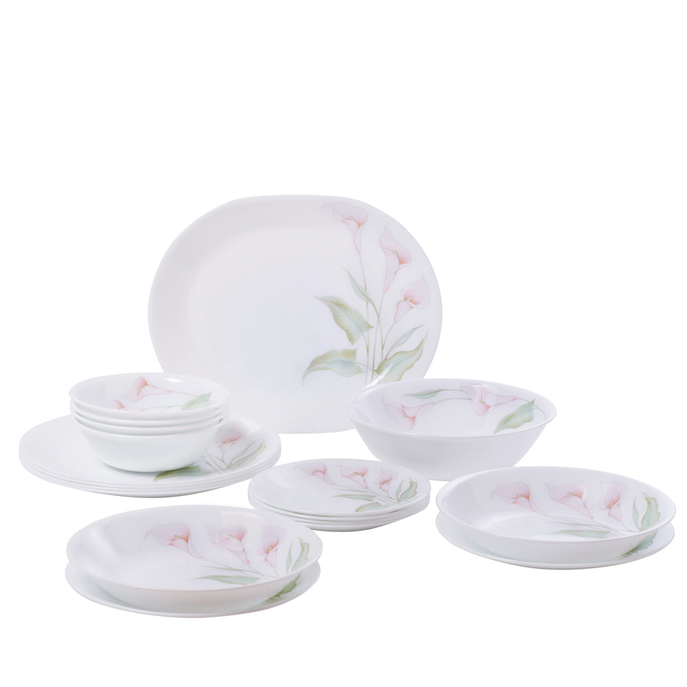 Set consists of: Dinner Plate x 4, Bread & Butter Plate x 4, 500ml Cereal Bowl x 4 , Luncheon Plate x 2, 21cm Soup Plate x 2 , 1L Serving Bowl x 1 , 31cm Serving Platter