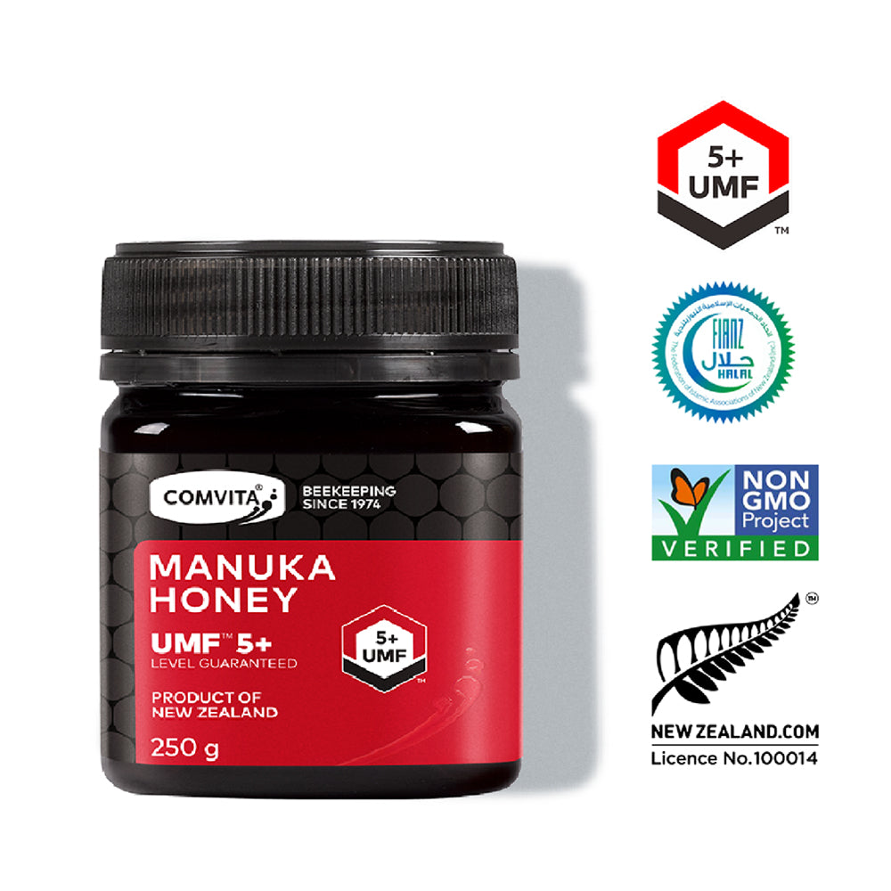 This premium grade Mānuka honey is made from the nectar of the Mānuka bush (Leptospermum scoparium) that blankets the remote hillsides of New Zealand. It has been certified UMF™ 5+ Mānuka honey, so you can have absolute confidence in the quality and purity of this premium honey.