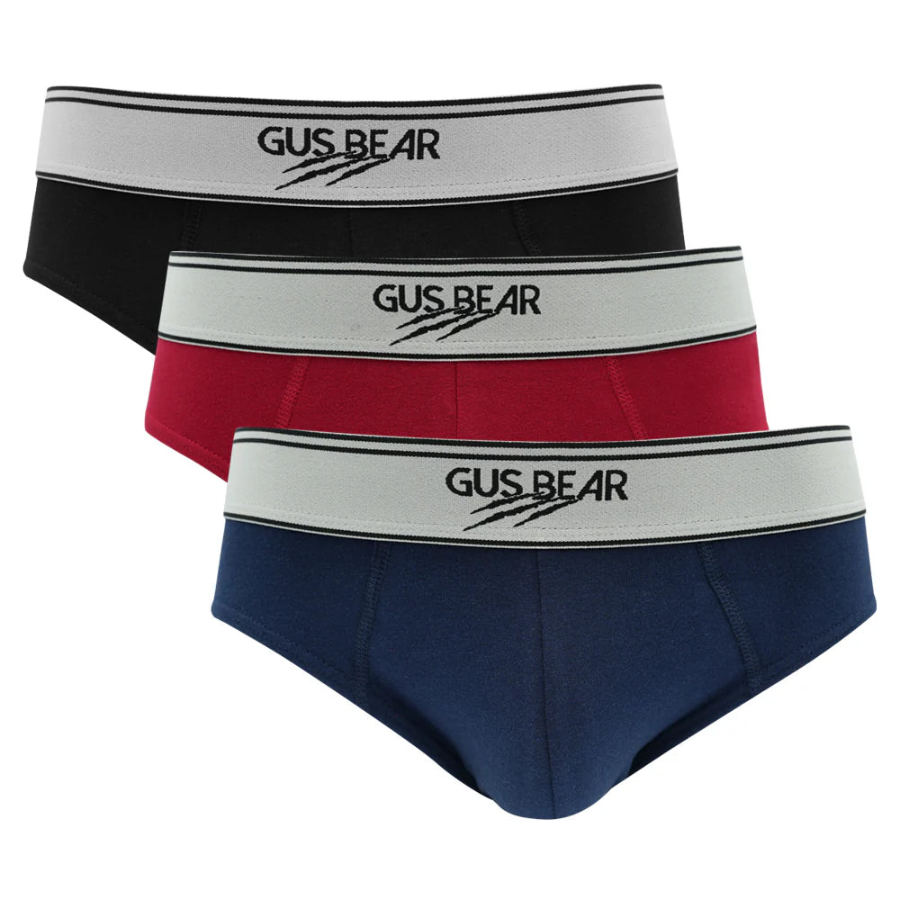 (Bundle of 2) GUS BEAR 100% Cotton Briefs (3-pc pack) - Navy/Red/Black