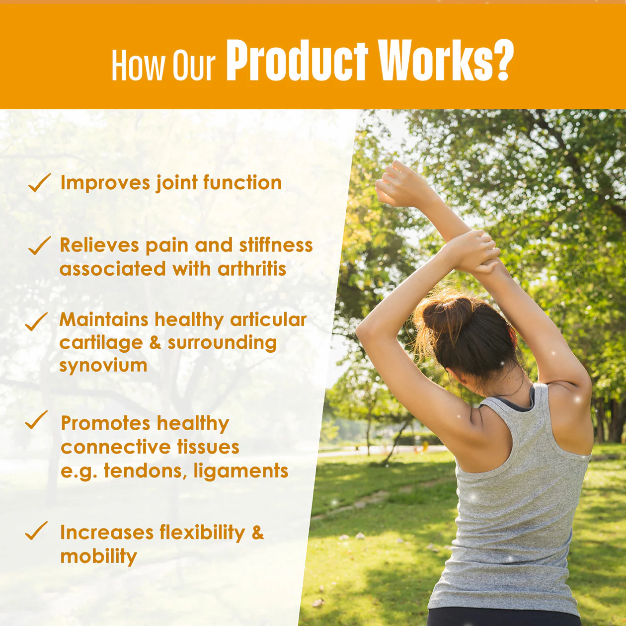 A refreshing citrusy drink that’s easy to consume daily. With consistent use, feel your stiffness ease and regain the freedom to move with confidence.