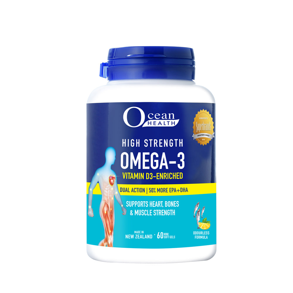 An odourless, lemon-flavored fish oil supplement designed to support heart, brain, eye, joint, and bone health. Each mini soft gel delivers 461mg of EPA/DHA and 500 IU of Vitamin D3, offering 50% more Omega-3 per capsule than standard alternatives, while aiding calcium absorption and muscle strength.