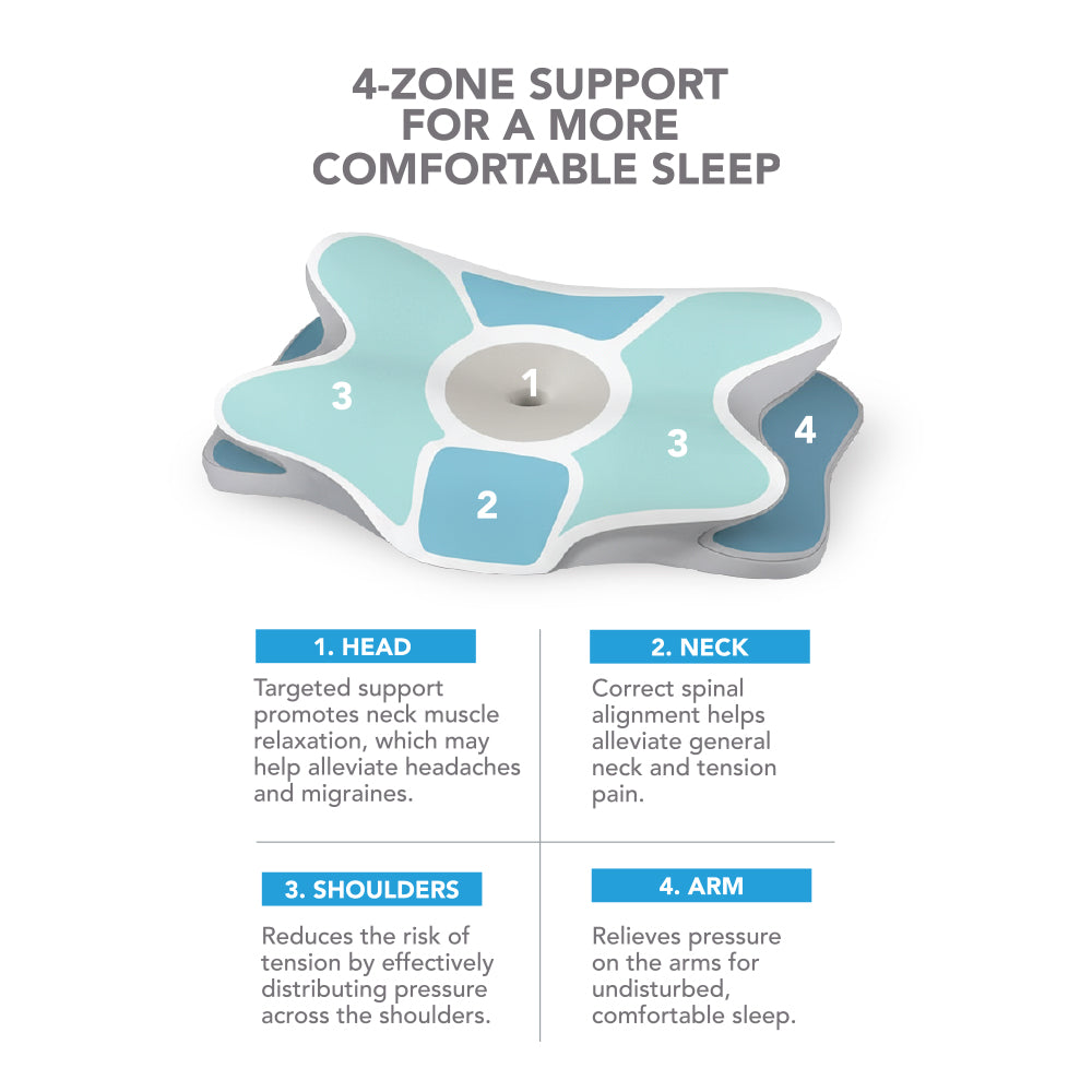 1. HEAD - targeted support promotes neck muscle relaxation, which may help alleviate headaches and migraines.