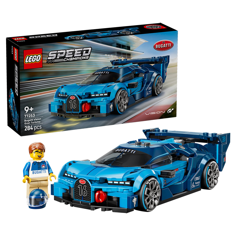 Boys and girls ages 9 and up can build, play with and display this spectacular LEGO® Speed Champions Bugatti Vision Gran Turismo Hyper Sports Car (77253). For the first time ever, this sleek Bugatti model kit lets fans of the car and the Gran Turismo video game series explore the elegance and performance of this engineering marvel.