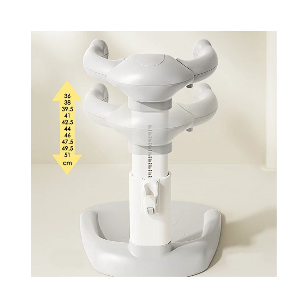 The height is adjustable in 10 stages, from 36-51cm, measuring from the baby's armpit to the feet.
