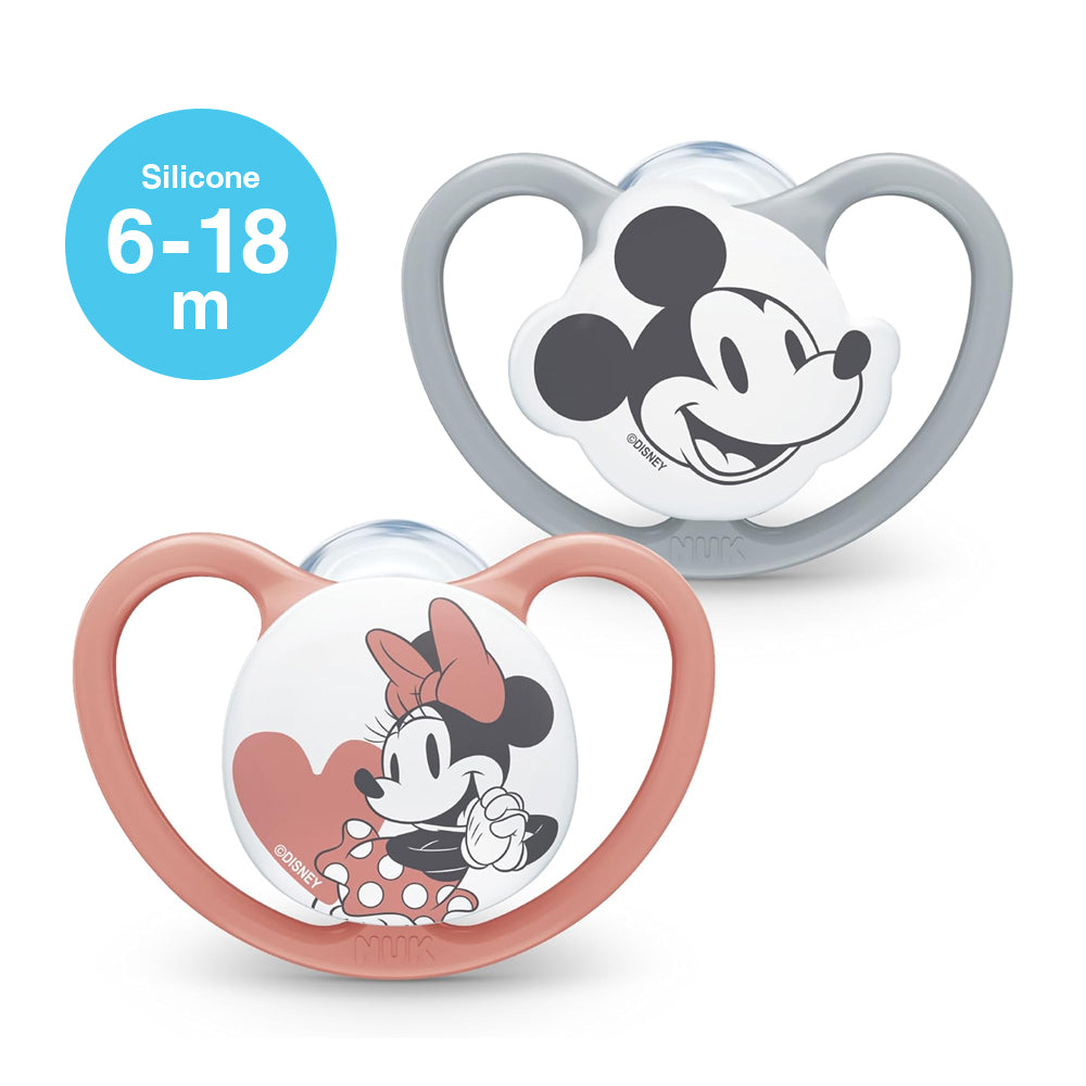 NUK Space Disney Mickey Mouse Silicone Soother Pacifier 2pcs-box - 6-18 months - Pink-Grey