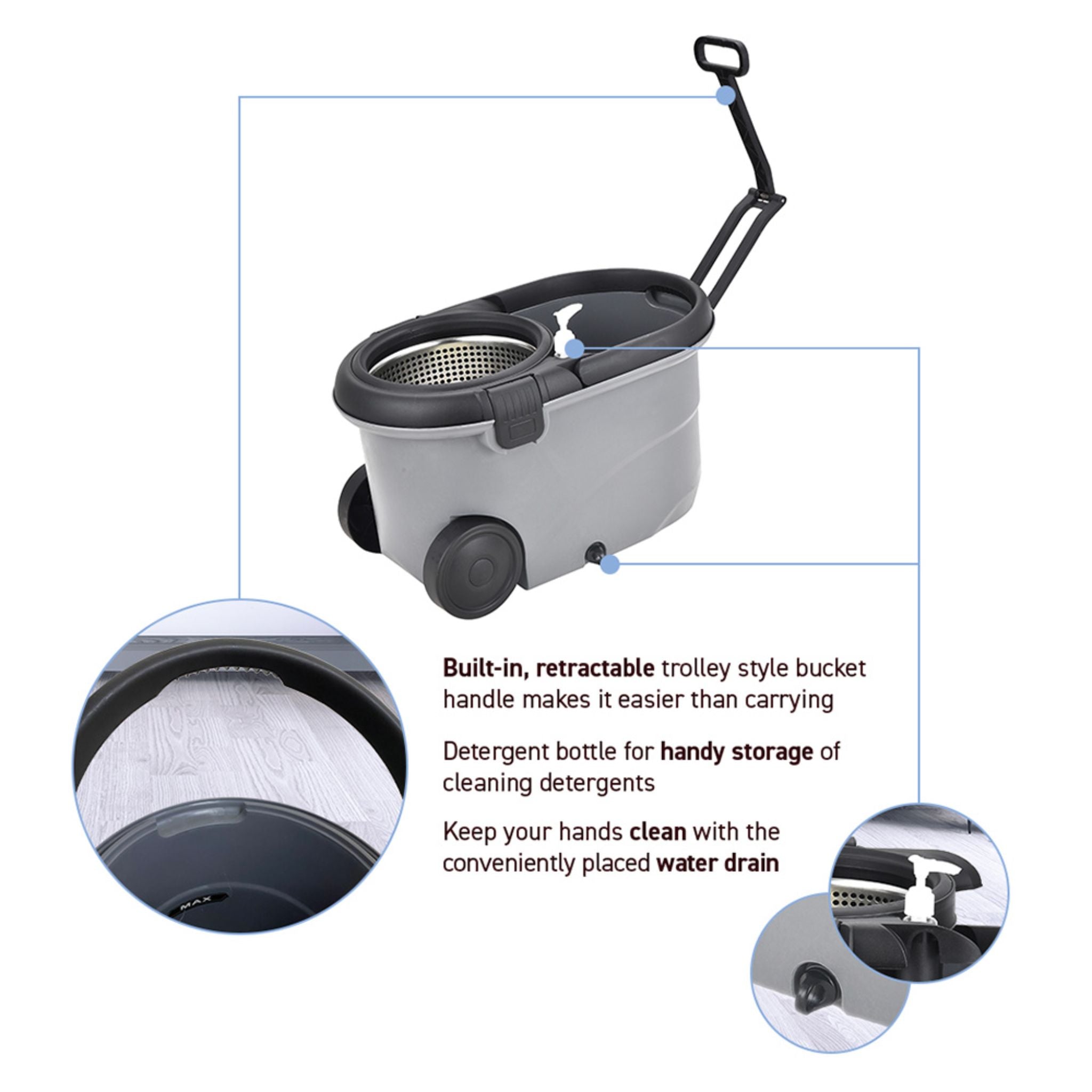 If you are looking for a complete and compact solution for wiping the floors, look no further than the Best Seller Ollie Spin Mop by Rene. Designed with the ease and convenience of the user in mind, the Ollie is ergonomic and intuitive to operate.