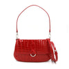 SANCHŌ Crocodile Leather Shoulder Bag with Long and Short Detachable Shoulder Straps - Red