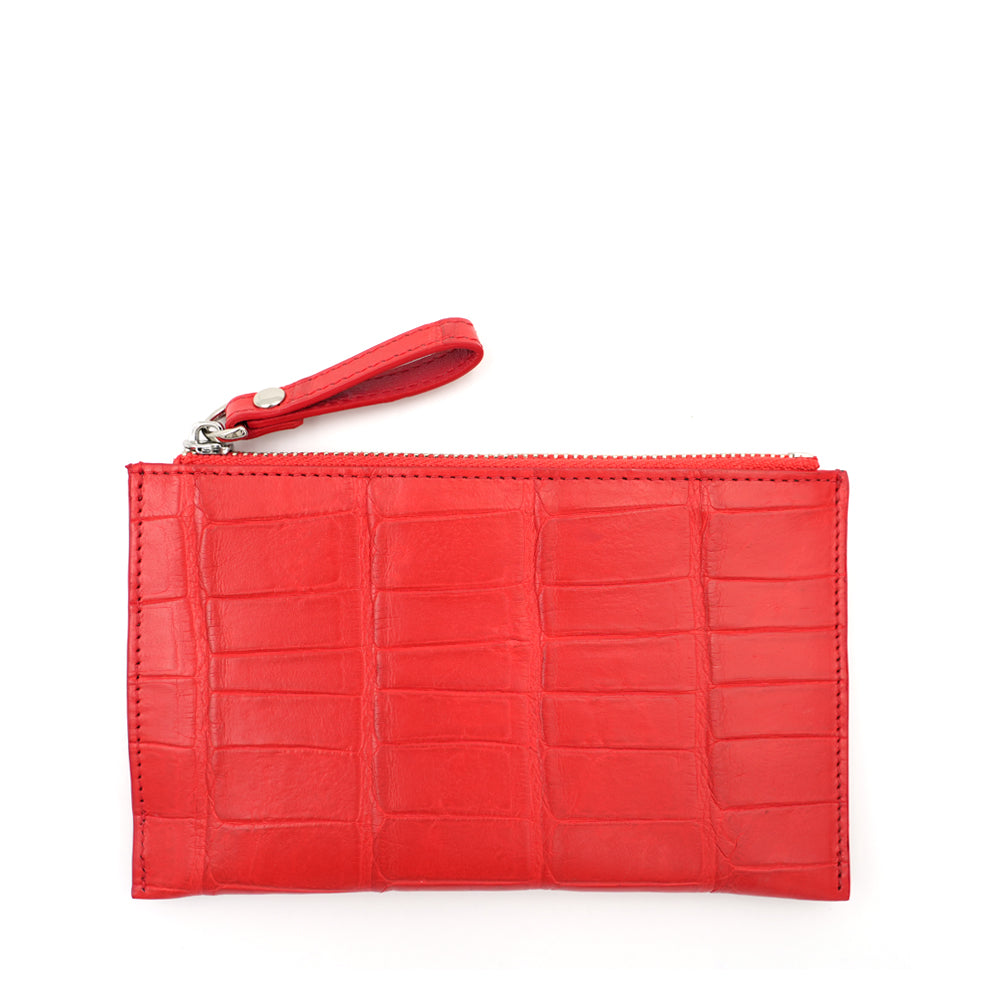 SANCHŌ Genuine Crocodile Leather Coin and Card Holder - Red