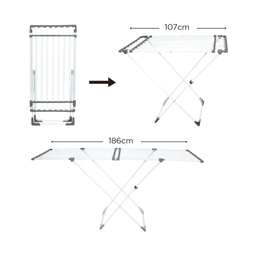 - The airer folds easily and folds ultra thin so you can store it in compact spaces.