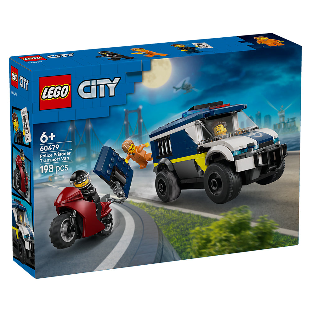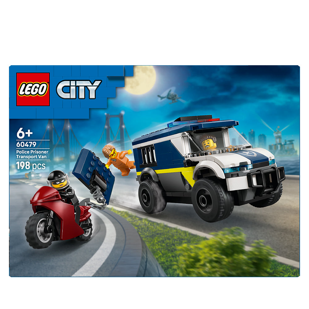 Gear up for exciting breakout adventures with the LEGO® City Police Prisoner Transport Van (60479) building set for kids ages 6 and up. The model police truck features a detailed driver’s cab and a jail cell with room for 2 crooks. Kids can use the toy motorcycle with its chain and hook to pull the door from the cell. Just add the police officer and 2 crook minifigures for epic jailbreak role play.