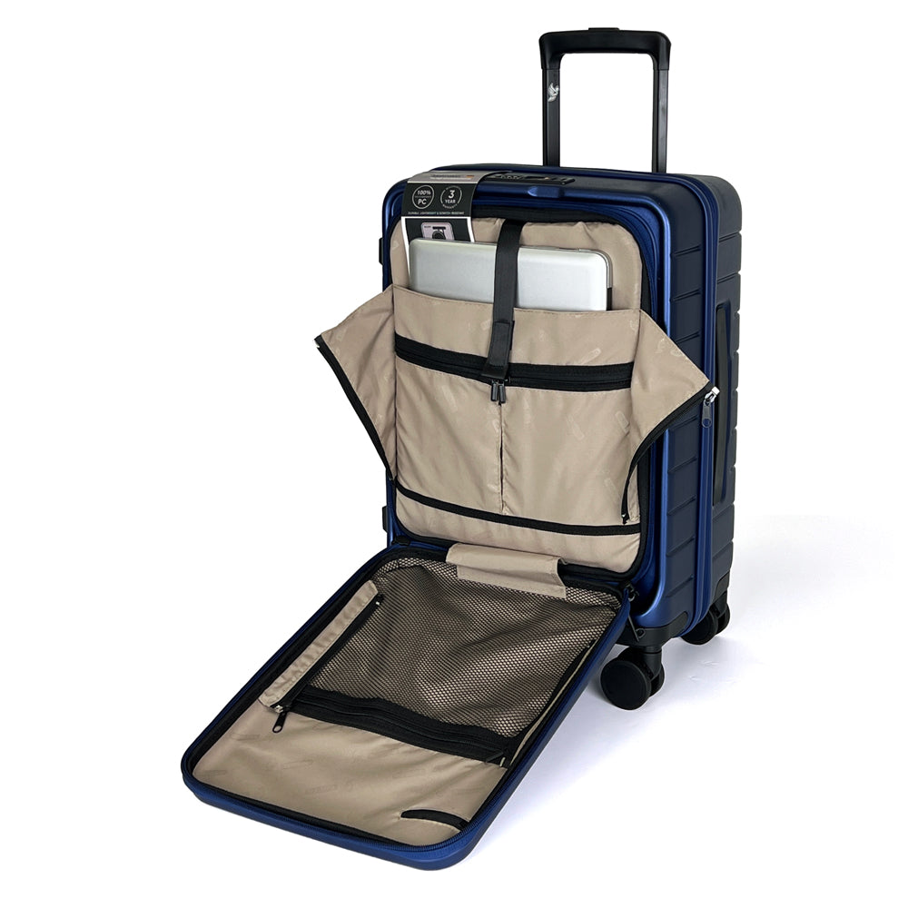 turaco 20" Silent Double-Wheel Expandable Polycarbonate Hard Case Luggage with Anti-Theft Zipper & TSA Lock - Navy Blue