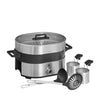 Savor culinary trends from around the world, with the stunning Lono Hot Pot & Steam by WMF. Its elegant design is the perfect addition to your table, turning healthy and delicious Asian-style dishes into shared moments with the ones you love. This combination hot pot and steamer features a refined two-compartment non-stick bowl, as well as two premium Cromargan® baskets—perfect for preparing individual ingredients and different sauces all at the same time. Meanwhile, the oval-shaped steaming top is ideal for steaming a wide variety of ingredients, from mouthwatering whole fish to tasty dim sum or bao. With a generous capacity for up to six people, a transparent glass lid for easy monitoring, and dishwasher-safe parts for effortless clean-up, Lono turns new recipes into exciting culinary moments.