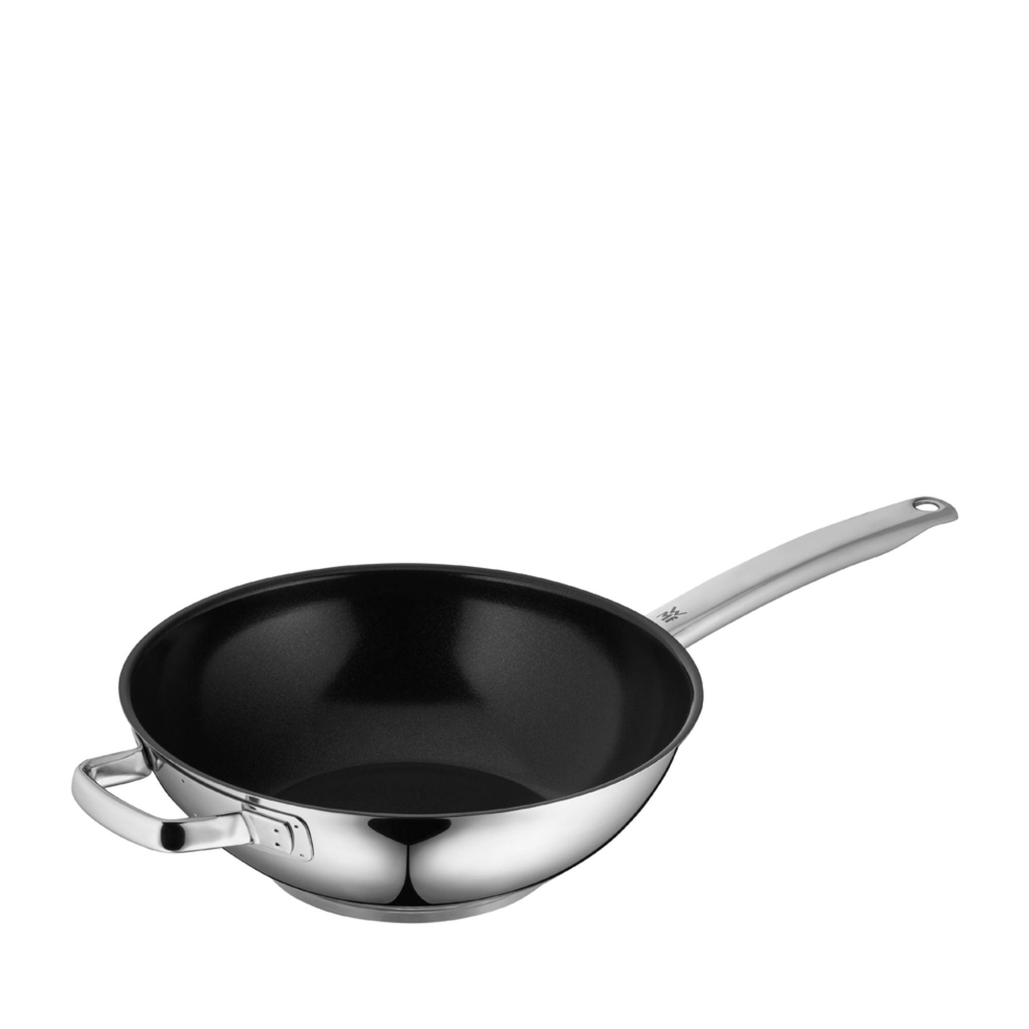 The WMF Durado Wok Pan features the perfect format for a wide variety of Asian culinary delights, ensuring all your favorite recipes cooked to perfection. Mouth-watering stir-fries and curries are easier than ever. Its robust ceramic coating is heat-resistant up to 400°C, offering excellent cooking results and easy cleaning. At the same time, its TransTherm® universal base ensures optimal heat distribution and retention that saves energy while cooking. Crafted from sleek Cromargan®: stainless steel 18/10, this practical kitchen pan goes straight from stovetop to oven for a flawless finish. Rounding it off are convenient features, including reduced-heat handles and a wide pouring rim for drip-free serving and a spotless kitchen. Compatible with all stovetops, including induction.