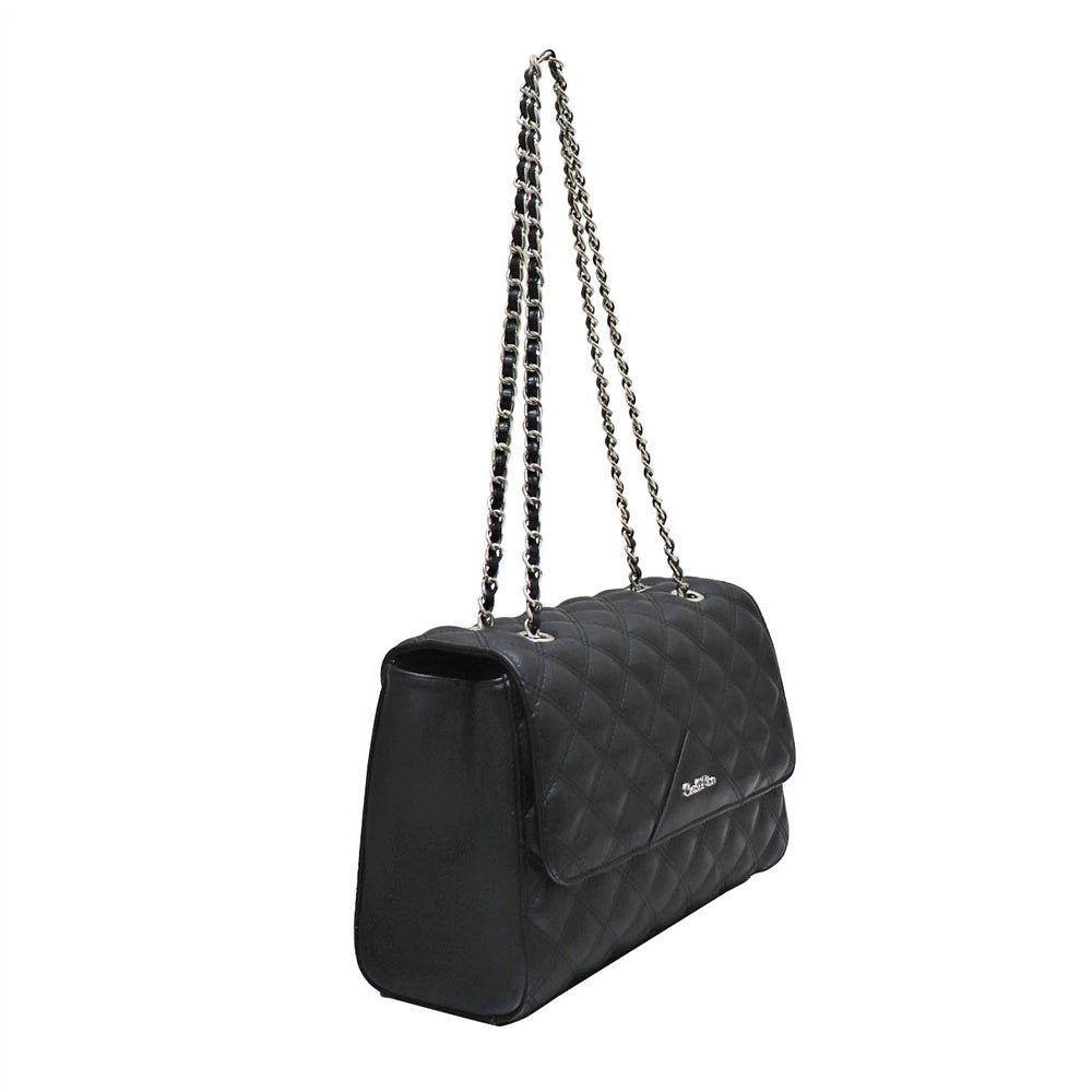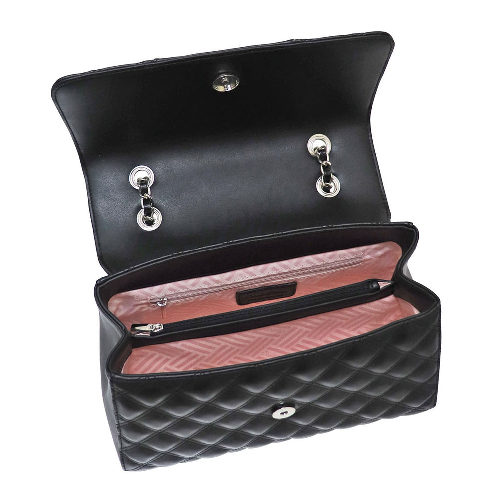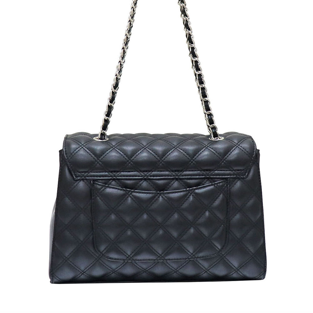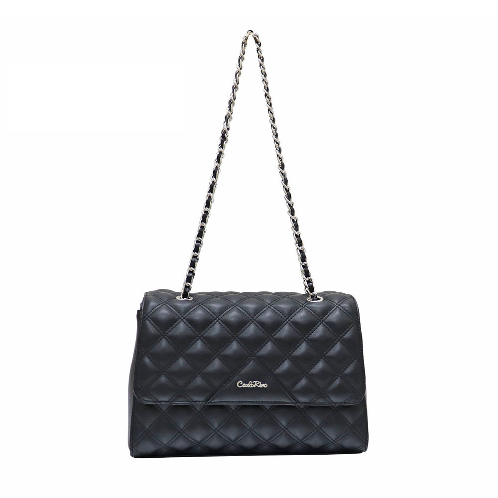 Carlo Rino Half-Flap Quilted Shoulder Bag - Black