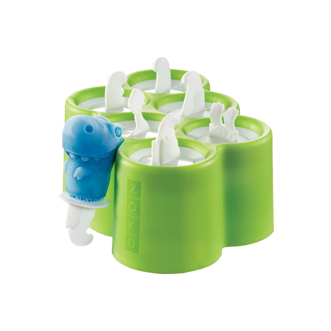 Rawr! These ice pops are from another era. Become an om-nom-nomivore with Lucy the Cavegirl and her five larger-than-life dinosaur friendsÑa stegosaurus, pterodactyl, tyrannosaurus, triceratops, and apatosaurus. It's sure to be a dino-score. Your pops will feel right at home in any freezer and can be made with your favorite juices, smoothies, or other recipes. Each frosty pop can be easily removed from the mold by pulling on the stickÑno rinsing required!