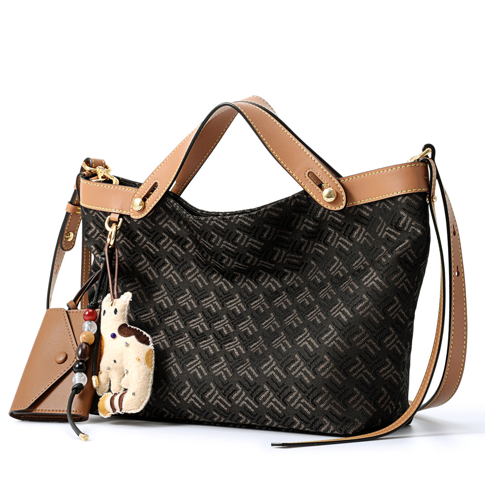 FION Leather-Trimmed Palace Jacquard Mini Bag - Brown