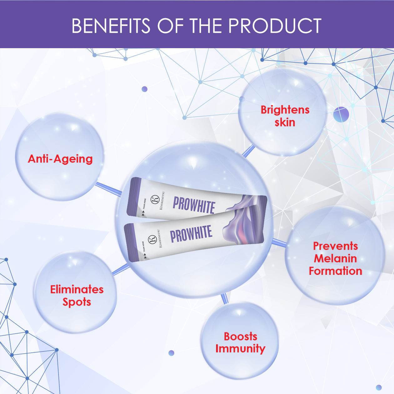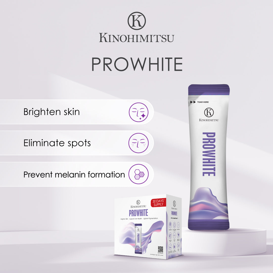 Kinohimitsu ProWhite is a delicious functional drink that provides systemic health and beauty functions. It contains Glutathione and two superfruits- Camu-Camu and Maqui Berry that eliminate spots and reduce oxidative stress. With such a powerful package of nutrients working in synergy, Kinohimitsu ProWhite helps to enhance skin clarity and radiance, boost up immune system and promote healthy liver for perfectly flawless and glowing skin in just matter of weeks!
