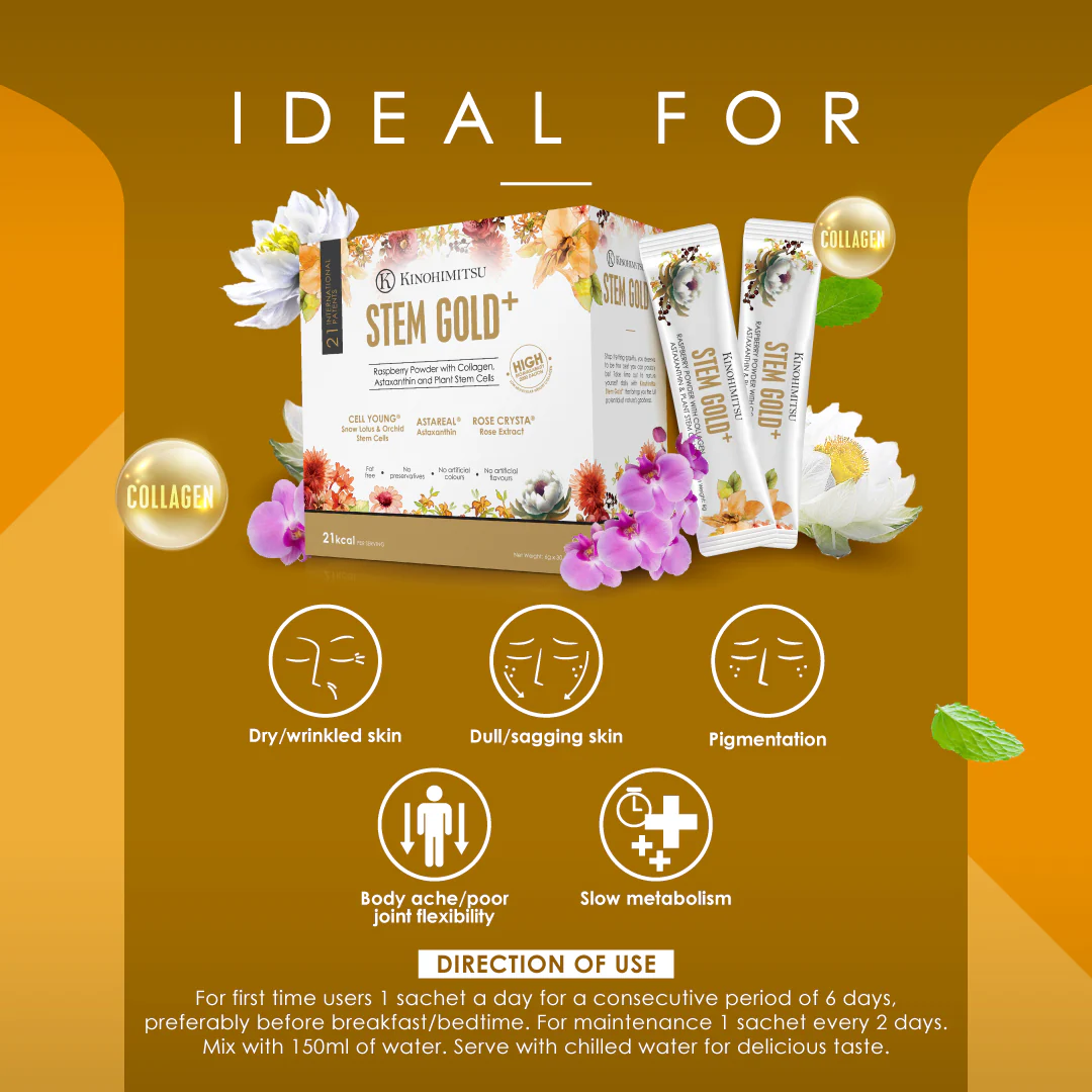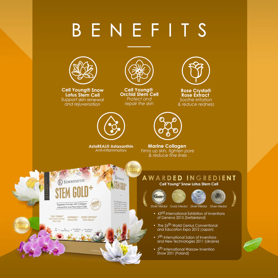 Stop fretting gravity, you deserve to be the best you can possibly be! Take time out to nurture yourself daily with Kinohimitsu Stem Gold+ that brings you the full potential of nature's goodness.