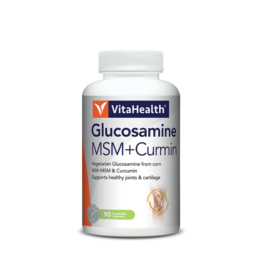 VitaHealth Glucosamine MSM + Curmin is a 3-in-1 vegetarian-friendly joint-health supplement to support healthy cartilage rebuilt and joint function.
