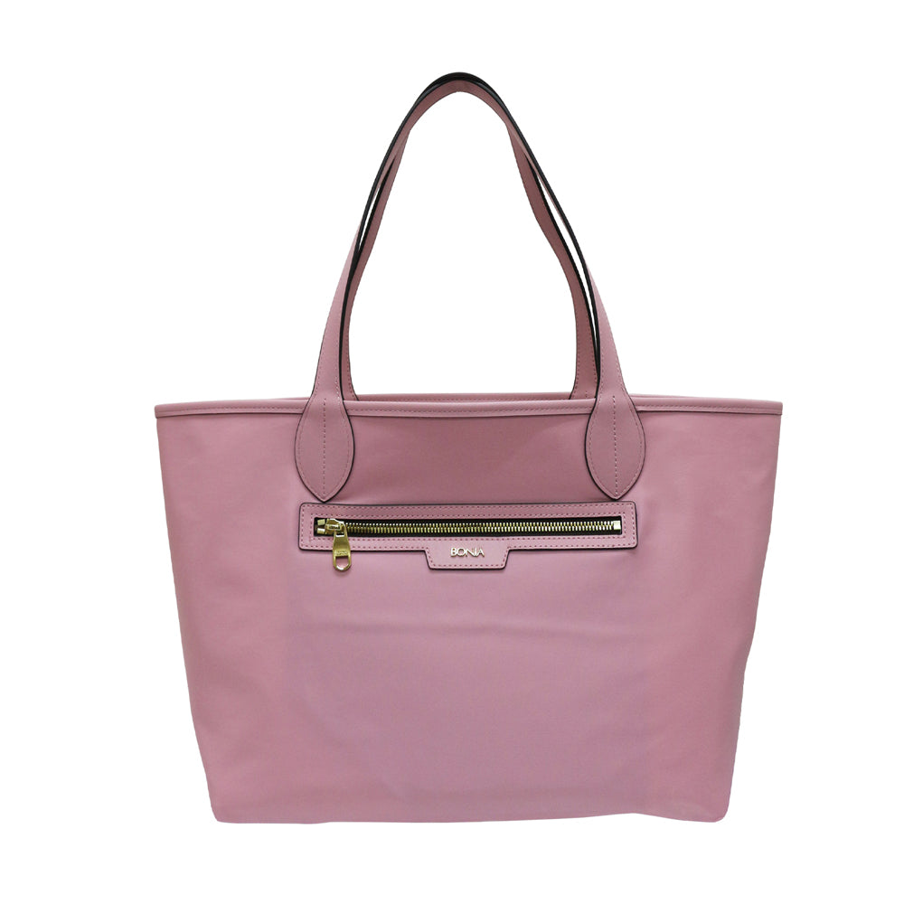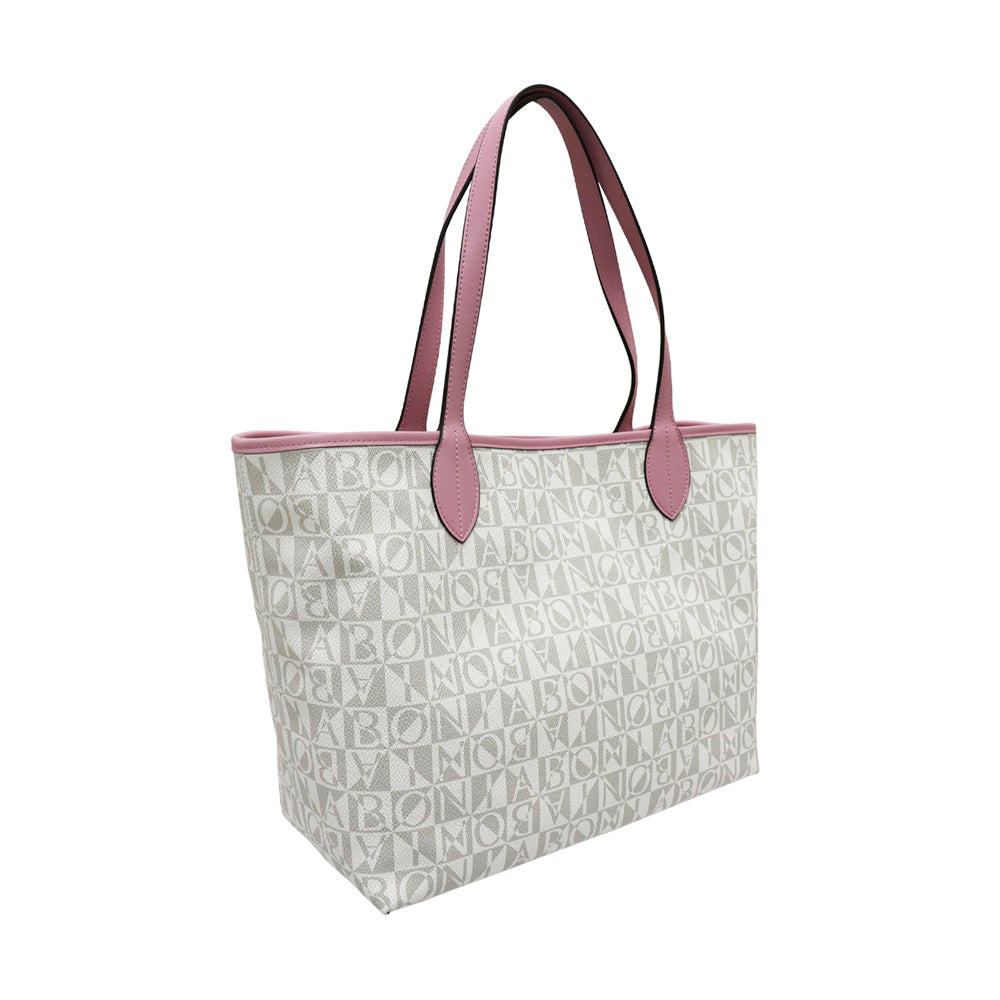 Bonia Leather-Trimmed Interchangeable Monogram or Plain Shopper + Wristlet - White with Pink